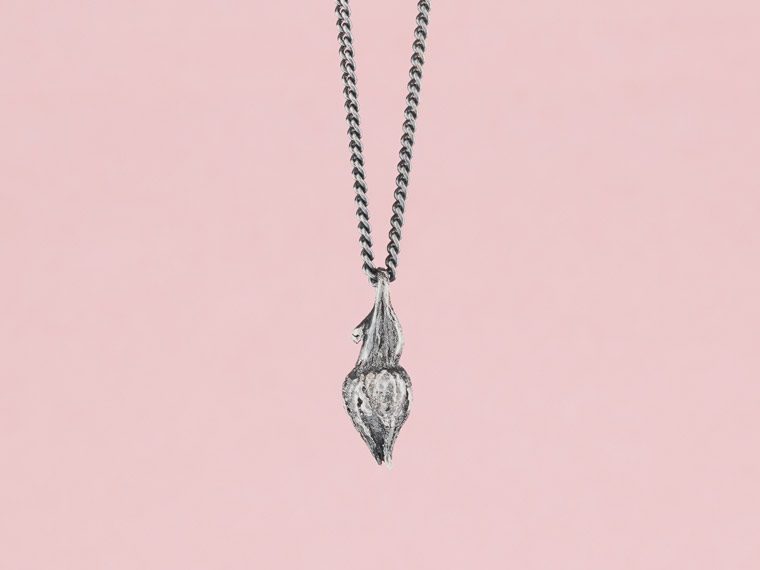 Rosenblüten, Tollkirschen, Obstkerne – in Silber oder Gold gegossen finden sie als Ketten und Colliers ihren Platz am Hals ihrer Träger.